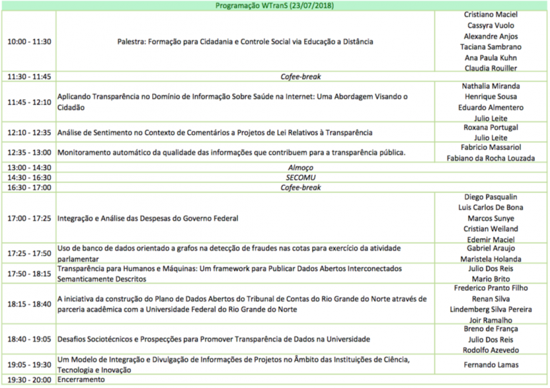 O Workshop de Transparência em Sistemas é um fórum que visa agregar pesquisadores de diferentes áreas com interesse no tema de transparência dentro de um contexto computacional.