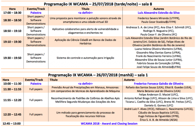 O 9º WCAMA tem como objetivo promover a integração efetiva da área de computação (metodologias e ferramentas) com temas relacionados ao meio ambiente (política e gestão).